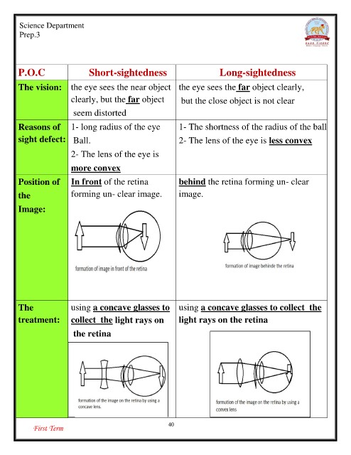 Reasons of 1- long radius of the eye 1- The shortness of the radius of the ball