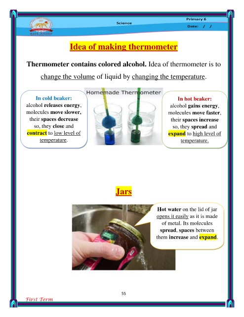 Thermometer contains colored alcohol. Idea of thermometer is to