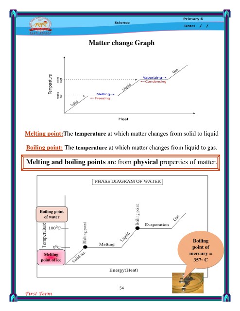 Boiling point: The temperature at which matter changes from liquid to gas.