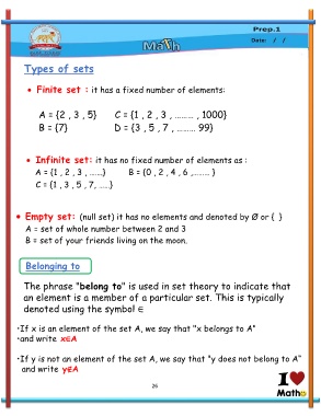 •If y is not an element of the set A, we say that "y does not belong to A“