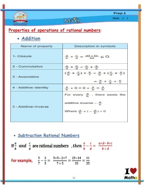 PPrriimmarryy56 Date : Properties of operations of rational numbers: • Addition • Subtraction Rational Numbers 51
