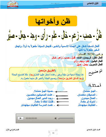 أفعال الظن /الرجحان /الشك :ظـ َّن ـ حسب ـ زعم ـ خـال