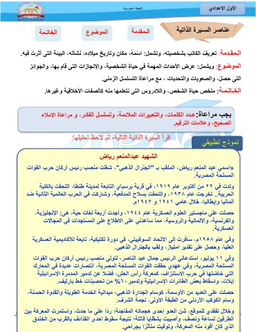الخـاتـمـة :ملخص حيا ِة الشخص ،واللادروس التى نتعلمها منه كالصفات الأخلاقية وغيرها.