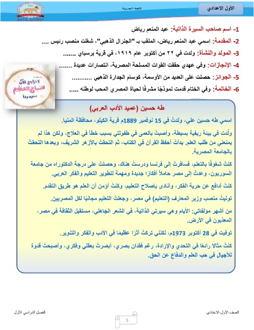 اسمي طه حسين علي ،ولد ُت في 15نوفمبر 1889م قرية الكيلو ،محافظة المنيا.