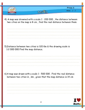 6) A map was drawn with a scale 1 : 500 000 . Find the real distance