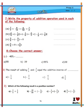 2) The result of adding 2 and - 3 equal the additive inverse of .....................