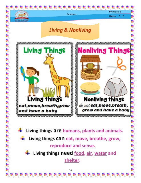 Living & Nonliving Living things are humans, plants and animals. Living things can eat, move, breathe, grow, reproduce and sense. Living things need food, air, water and shelter. 14