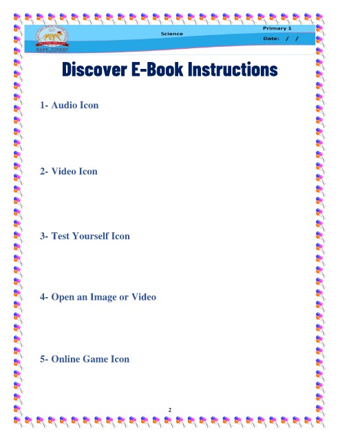 Discover E-Book Instructions 1- Audio Icon 2- Video Icon 3- Test Yourself Icon 4- Open an Image or Video 5- Online Game Icon 2