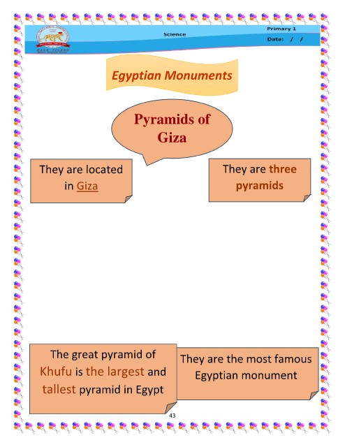 Egyptian Monuments Pyramids of Giza They are located They are three in Giza pyramids The great pyramid of They are the most famous Khufu is the largest and Egyptian monument tallest pyramid in Egypt 43