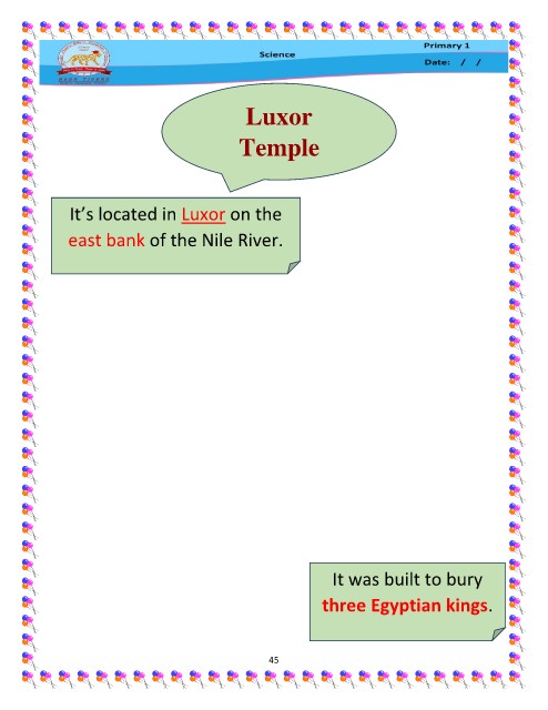 Luxor Temple It’s located in Luxor on the east bank of the Nile River. It was built to bury three Egyptian kings. 45