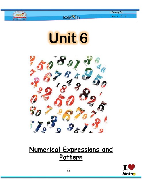 Primary 5 Date : Unit 6 Numerical Expressions and Pattern 92