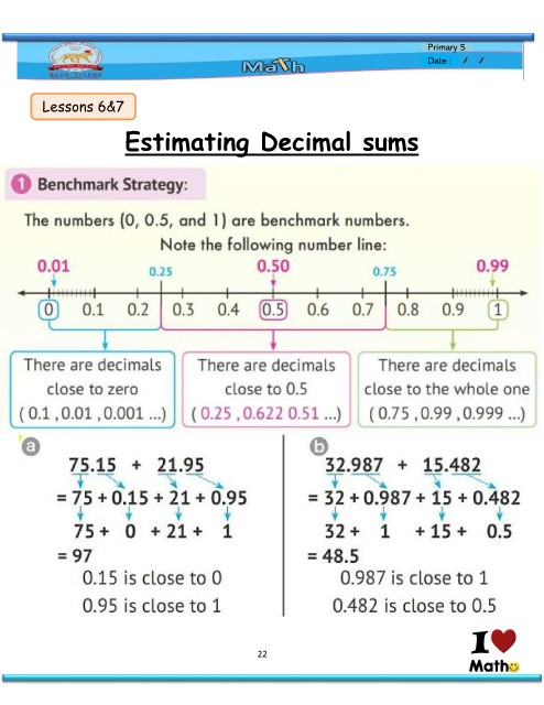 Primary 5 Date : Lessons 6&7 Estimating Decimal sums 22