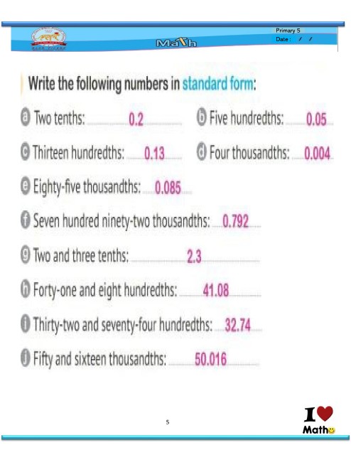 Primary 5 Date : 5