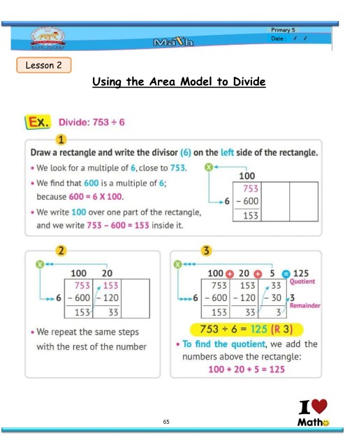 Lesson 2 Primary 5 Date : Using the Area Model to Divide 65