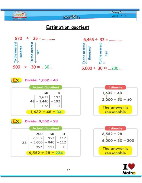 Primary 5 Date : Estimation quotient 67