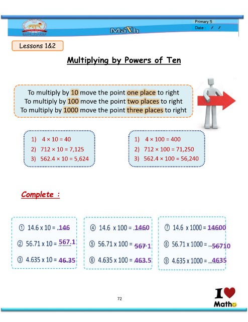 3) 562.4 × 10 = 5,624 3) 562.4 × 100 = 56,240