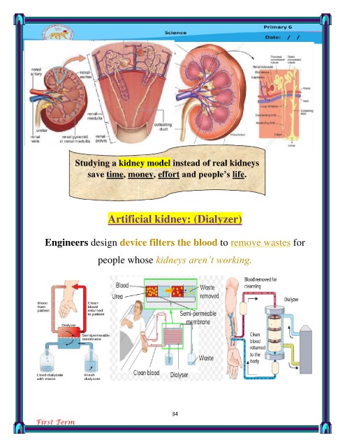 Studying a kidney model instead of real kidneys save time, money, effort and people’s life. Artificial kidney: (Dialyzer) Engineers design device filters the blood to remove wastes for people whose kidneys aren’t working. 34 First Term
