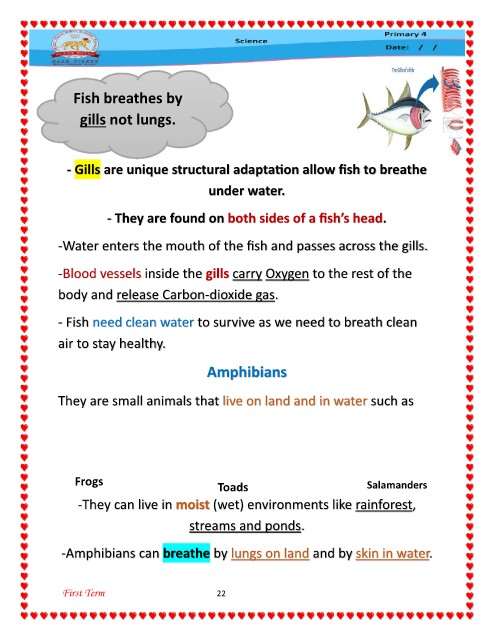 -Blood vessels inside the gills carry Oxygen to the rest of the