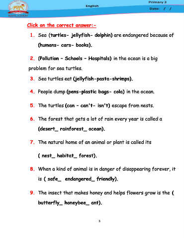 1. Sea (turtles- jellyfish- dolphin) are endangered because of