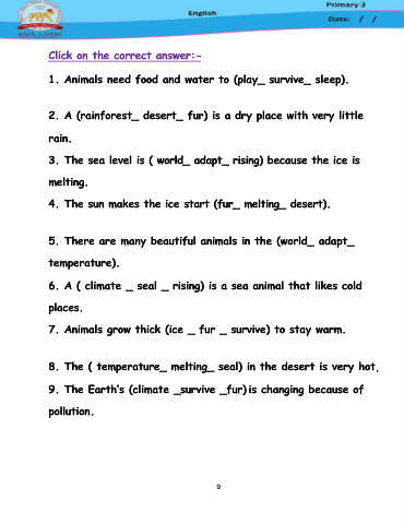 6. A ( climate _ seal _ rising) is a sea animal that likes cold
