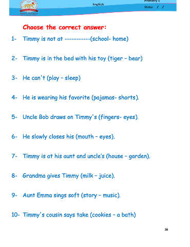 7- Timmy is at his aunt and uncle’s (house – garden).