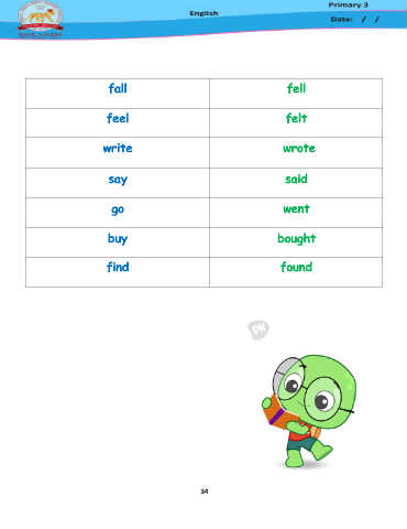 fall fell feel felt write wrote say said go went buy bought find found 34
