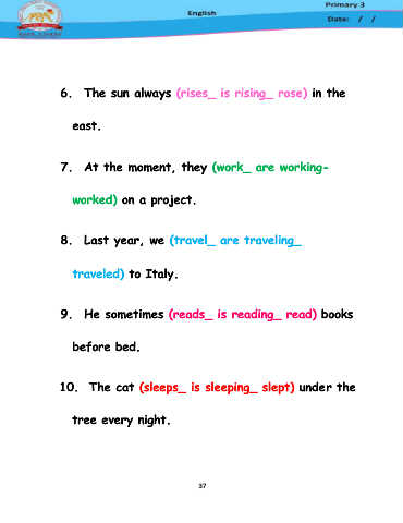 10.  The cat (sleeps_ is sleeping_ slept) under the