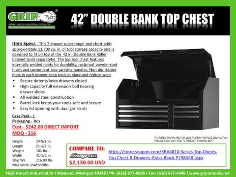 Weight 181 lbs. COMPARE TO: https://store.snapon.com/KRA4810-Series-Top-Chests-