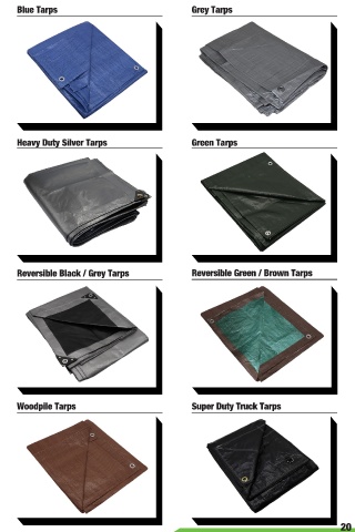 Blue Tarps Grey Tarps Heavy Duty Silver Tarps Green Tarps Reversible Black / Grey Tarps Reversible Green / Brown Tarps Woodpile Tarps Super Duty Truck Tarps 20