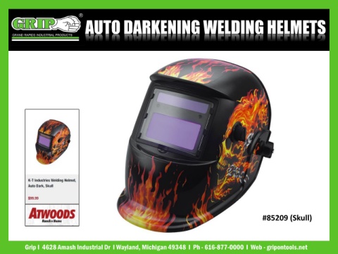 AUTO DARKENING WELDING HELMETS #85209 (Skull) Grip I 4628 Amash Industrial Dr I Wayland, Michigan 49348 I Ph - 616-877-0000 I Web - gripontools.net