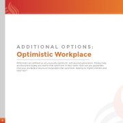 Millennials are de ned as an unusually optimistic, self-assured generation. Productivity and business loyalty are tied to that optimism in their work. How can you guarantee that your workplace structure invigorates that optimism, leading to higher interest and retention?