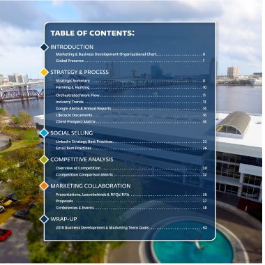 2018 Business Development & Marketing Team Goals . . . . . . . . . . . . . . . . . . . . . . . . . . . . . 42
