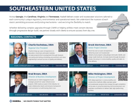 Across Georgia, the Carolinas, Virginia and Tennessee, Haskell delivers water and wastewater solutions tailored to