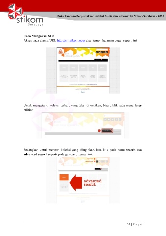 Akses pada alamat URL http://sir.stikom.edu/ akan tampil halaman depan seperti ini