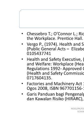 Pengenalpastian Risiko Hazard, Penaksiran (HIRARC), ISBN 978‐983‐2014‐62‐1 NOSS/JPK/KSM JULAI 2017 GCA04(CA04)
