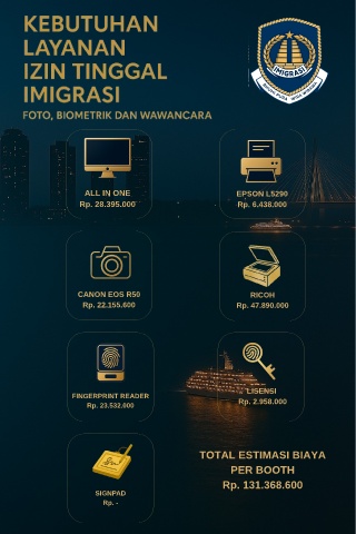 ALL IN ONE EPSON L5290 Rp. 28.395.000 Rp. 6.438.000 CANON EOS R50 RICOH Rp. 22.155.600 Rp. 47.890.000 LISENSI FINGERPRINT READER Rp. 23.532.000 Rp. 2.958.000 TOTAL ESTIMASI BIAYA PER BOOTH Rp. 131.368.600 SIGNPAD Rp. -