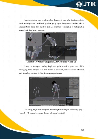 Langkah ketiga, buat constrain child dan parent pada telur dan tangan Udin