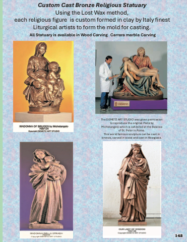 each religious figure is custom formed in clay by Italy finest Liturgical artists to form the mold for casting.
