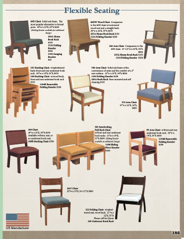 160 Arm Chair Companion to the 60D chair. 27-1/2”w x 23”d, 34”h $850 255A Hymn Book Rack $105 1134 Folding Kneeler $200