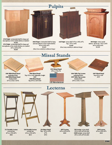 320 Lectern w/one shelf. 16”w x 16”d, 43”h $1,540 320B Lectern w/one shelf 20”w x 16”d, 45”h $1,840
