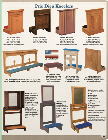 2600 Prie Dieu w/wood armrest and aluminum mesh screen $2,155 2600A Prie Dieu w/ padded armrest
