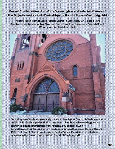 Bovard Studio restoration of the Stained glass and selected frames of The Majestic and Historic Central Square Baptist Church Cambridge MA