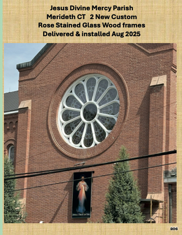 Jesus Divine Mercy Parish MeridethCT 2NewCustom Rose Stained Glass Wood frames Delivered & installed Aug 2025 206