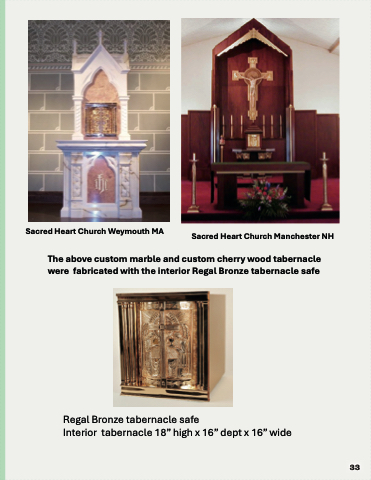 The above custom marble and custom cherry wood tabernacle were fabricated with the interior Regal Bronze tabernacle safe