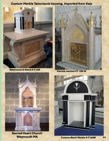 Custom Marble Tabernacle housing, Imported from Italy Tabernacle & Stand # IT 240 Carrara marble # IT 220 W Sacred Heart Church Weymouth MA Custom Black Marble # IT 200B 34