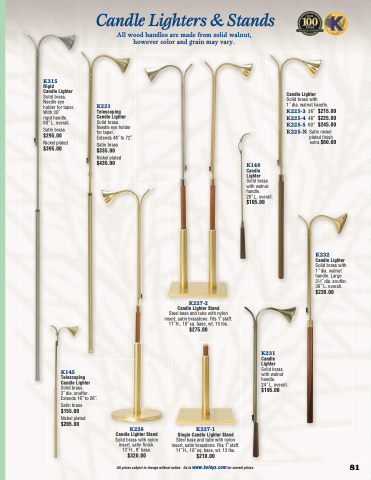 All prices subject to change without notice. Go to www.koleys.com for current prices.