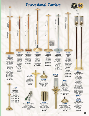 Processional Torch Solid brass, two-tone finish. 40˝ H., 7⁄8˝ socket, 51⁄2˝ bobeche. $455.00
