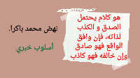 نهض محمد باكرا. هو كلام يحتمل أسلوب خبري الصدق و الكذب لذاته ،فإن وافق الواقع فهو صادق وإن خالفه فهو كاذب