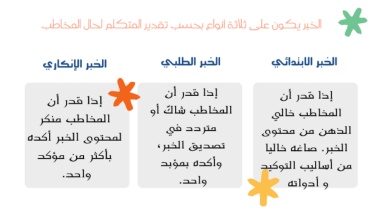الخبر يكون على ثلاثة أنواع بحسب تقدير المتكلم لحال المخاطب