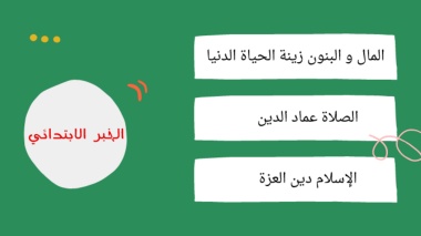 الخبر الابتدائي المال و البنون زينة الحياة الدنيا الصلاة عماد الدين الإسلام دين العزة